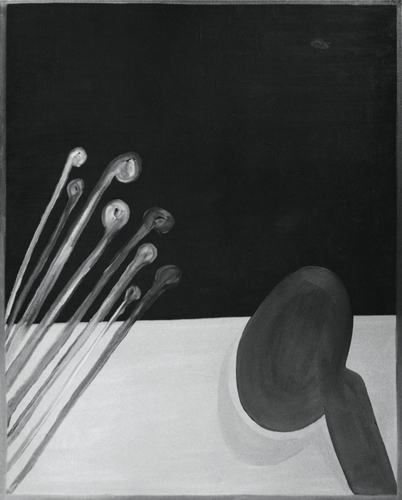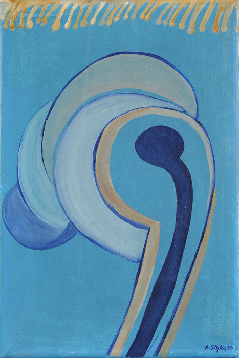 The path covered by Styka during his artistic quests and transformation phases is long and intricate. After the noteworthy spatial solutions described above, and especially after the fine mature series of his metal ‘Stimulators’, he turned towards painting, his motivation being that the shortage of material at home would preclude the continuation of, and elaboration on, his earlier attempts. What he painted for a short time in the 1970s was partly figurative, partly metaphorically expressive, yet always organic and quite evidently emotional. He must have had a feeling that there was something incomplete and not quite his own in this kind of painting so that it lacked truth. In consequence, he abstained from putting it on display.