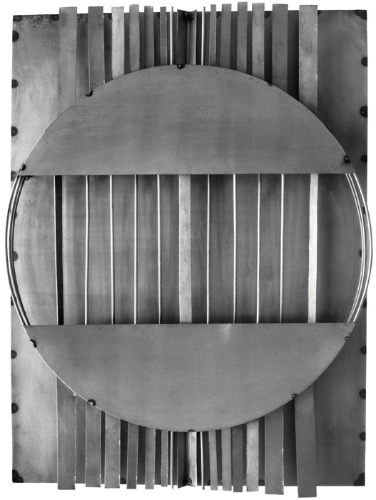 n the second half of the 1960s, painted images were absent from Adam Styka’s work. Soon after his graduation in 1966, the young artist took part in the famous First Symposium of Artists and Scientists in Puławy held under the title ‘Art in the Changing World’. Here his first relief images in metal saw the light of day. He called them Stimulators and continued the series for the next six years. He later wrote, ‘In these works, I was on the lookout for a solution to three problems preoccupying me at that stage, that is, composition, space, and light.’ Constructed of rhythmically repetitive elements, such as vertical and horizontal slats or oval and cylindrical forms, the Stimulators suggested a reference to music. There was no element of contradiction in the fact that the geometric order of divisions and the technical coldness of metal were juxtaposed with, or perhaps deliberately set against, musical lyricism and the gentleness of oval shapes. Rather, it was a sign that diametrically opposite values strive for harmony by complementing each other.